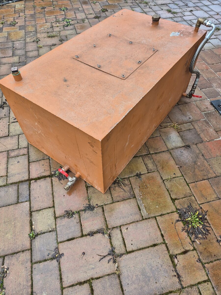Prodám nádrž na olej objem cca 180l. Dvouplašťová s elektrickým ukazatelem hladiny. Rozměry na foto.