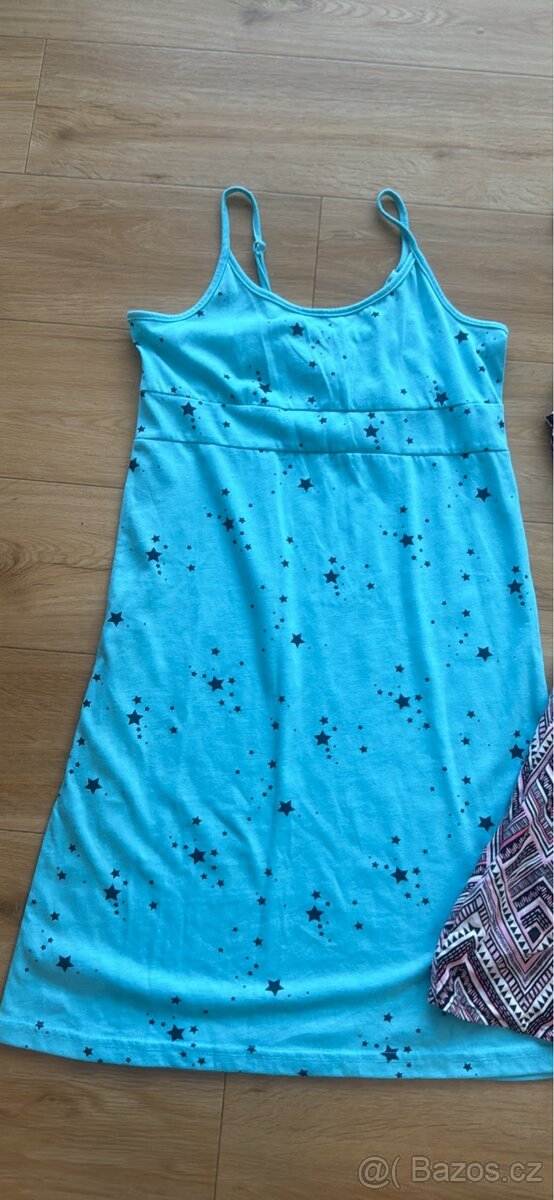 Krasne tyrkysove modre bavlnene saty zn. SAM. Uvedena vel. je 164, ale jsou spise mensi, mozna do vel. max 158. bavlna, super stav, nastavitelna raminka. Delka cca 76 cm.