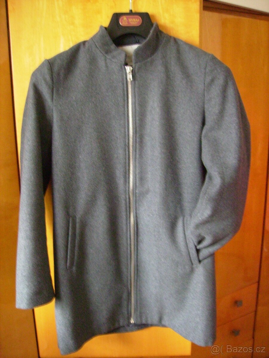 Jarní kabátek, teplejší i do mírné zimy, barva šedá antracit, rovný střih, oblíbený a nošený, na zip, dvě kapsy, vel. 40, délka 87 cm, průramky 50 cm, podšívka, lze prát na 30 ..platba na účet, DOPRAVA V CENĚ, při výběru více věcí sleva..