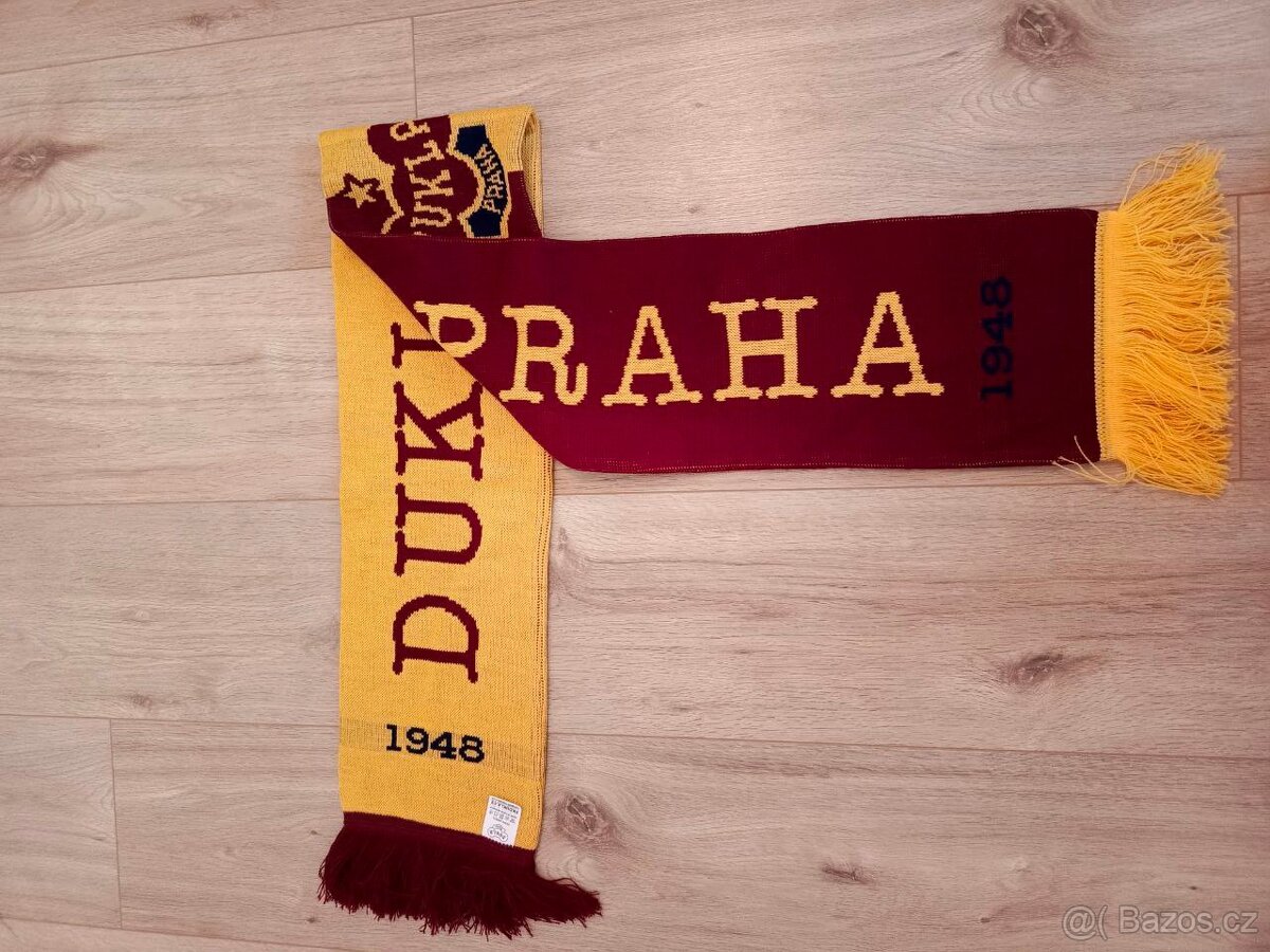 Zcela nová stylová šála nejen pro fanoušky Dukly! Na obou stranách šály je název a rok založení klubu. Osobní předání Roztoky u Prahy nebo metro Dejvická. Jinak rád pošlu. Původní cena 470 Kč.