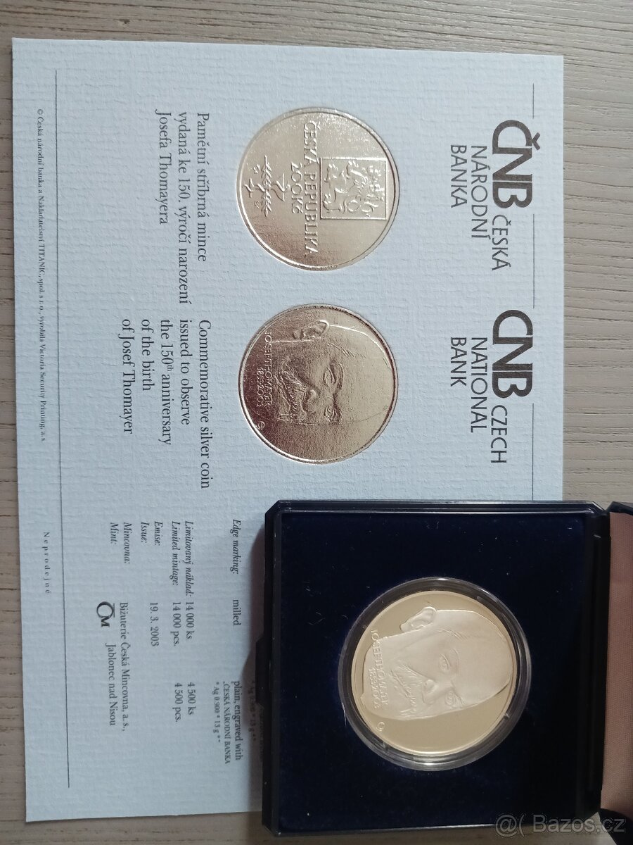Prodám stříbrnou minci Thomayer proof proof za Kč 3 500,-. Osobní předání Praha, Příbram, Dobříš, jinak Balíkovna na výdejní místo Kč 80,- nebo cenné psaní Kč 110,-. Bezchybný stav. Reference doložím.