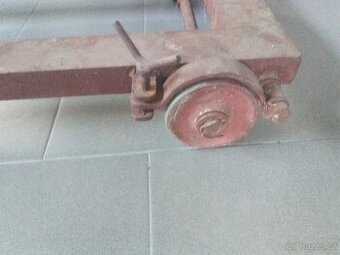 Prodám robustní podvozek s kovovými koly, dvě brzdene. Původně na tom stála dlabacka. Rozměry viz foto.