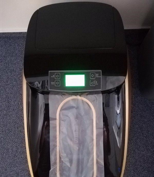Automatický obouvač návlekůAutomatický obouvač hygienických návleků XT - 46C, rozměry 800 x 445 x 330 mm.