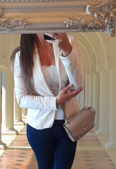 Dámské elegantní bavlněné sako / krátký kabátek zn. Zara ✒ barva: krémovo - šedý melír ✒ poddajný příjemný materiál: bavlna, polyester ✒ falešné kapsy ✒ na zadečku rozparek ✒ na ramenou vycpávky ✒ ve velmi pěkném stavu (odstraněné cedulky) ✒ vel. psaná M (foceno na postavě 38/178), délka 61cm, prsa 46 - cca 50cm x2, ramena 41cm, rukáv celková délka bez ohrnutí 64,5cm od ramene, vnitřní rukáv neohrnutý 48cm + poštovné Balíkovna 75 Kč nebo Zásilkovna 89 Kč PODMÍNKY PRODEJE (prosím čtěte): - v případě zájmu, pište přes formulář pod inzerátem (nabídek mám více, tak ať vidím, o který předmět se přímo jedná) - pokud neobdržíte odpověď na svůj dotaz, prosím, ozvěte se znovu (stává se zde, že ne vždy zprávy dorazí v pořádku) - kvůli nevhodným telefonátům, perverzním nabídkám a v poslední době šířícím se podvodům, komunikuji pouze přes email, vážným zájemcům odpověď posílám velmi rychle (na SMS a WhatsApp neodpovídám) - poštovné a balné zobrazeno v popisku - platba předem na účet - ze špatnýc