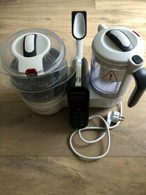 Multifunkční přístroj Babymoov Nutribaby+, v bílé barvě. Přístroj byl zakoupen v září 2018, některé bíle části jsou vlivem času a zeleniny mírně zbarvené, nádoby na vaření jsou po stranách znečištěné od vaření v páře, to bohužel nejde umýt. Jinak je přístroj v dobrém stavu. Chybí manuál, ten je k dispozi na webových stránkách. Zboží je možné zaslat (cena zboží + poštovné).