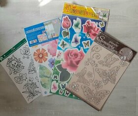 Prodám nové dekorace na zeď viz foto. Motýli, květiny 50,-- PRODÁNO - 3D růže 50,-- PRODÁNO - Stříbrná dekorace motýli 50,-- PRODÁNO - Velikonoční předlohy na adhezní folii k barvičkám na sklo 30,-- Při koupi všech cena 150,--