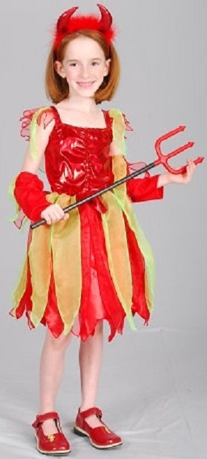Pro děti 5 - 9 let. Součástí balení jsou : pěkné dvoubarevné šaty + čelenka s rohy.. Nový, originál zabalený.