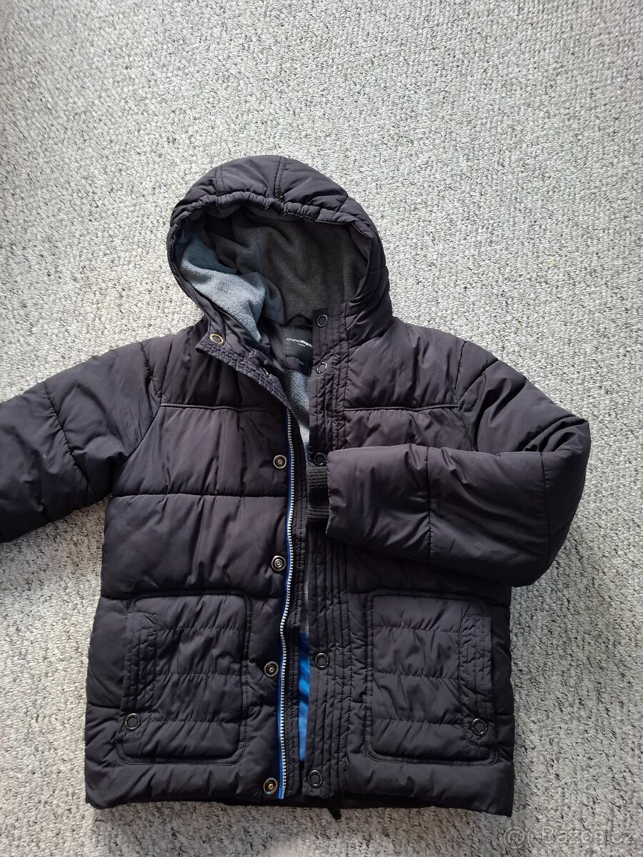 Pekna a tepla zimni bunda pro chlapce, vel. 152. Chybi hen jeden patent, ale ničemu nevadi