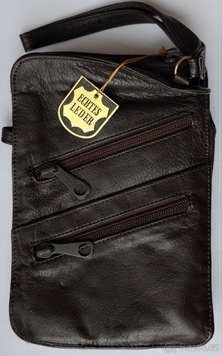 Luxusní brašna Pravá kůže, 22x15 cm, Kapsy: postranní - 3x zip, 1x suchý zip, +1 hlavní 1x zip. Tvrdá kvalitní kůže + vnitřní textilní podšívka . Krátký řemínek/kůže. Stav: zcela bez závad, nová/ nepoužitá (záruka) (Původní cena 690,-).