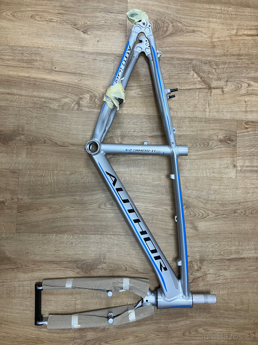 Rám author ultrasonic 24", po jednom dítěti do 500 km. Včetně originální pevné vidlice (nepoužité) a hlavového složení. Rám 1770 g, vidlice 750 g.