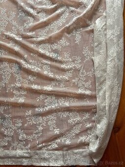 Krasne zaclony bezove dva kusy delka 295 cm a sire 145 cm na obou stranach ozdobny lem , nahore tunylek, na jedne malinka dirka. Cena za obe