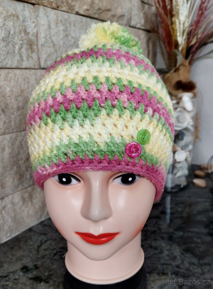 Ručně háčkovaná čepice. Obvod hlavy 48 cm