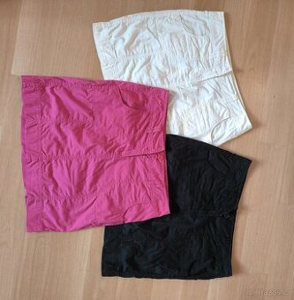 Lehké pohodlné sukně. Zapínání na zip a 2 knoflíčky, 2 kapsy přední+2 kapsy zadní, poutka na pásek.
