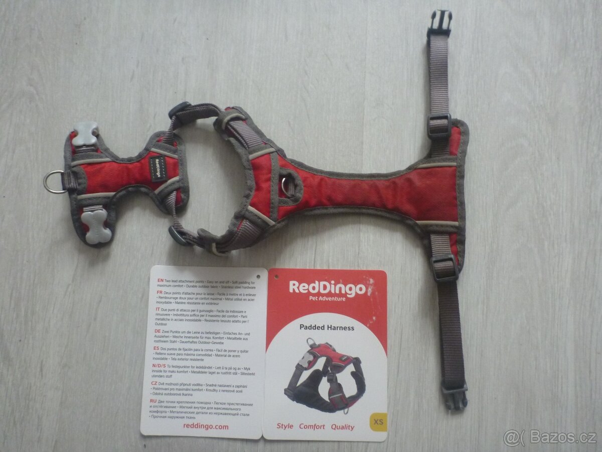 Nabízím velice málo používaný polstrovaný postroj na malého psa - čivavu, velikost XS (31-43 cm). Dobře se nastavuje a jsou dvě možnosti připnutí vodítka. Původní cena 819 Kč.