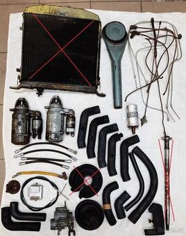 Prodám soubor náhradních dílů pro vozy Škoda Octavia, 105, 120, 1203 apod. Některé díly jsou nepoužité uloženky, jiné použité. Prodám ideálně jako celek. Namátkou: chladič (již prodán), indukční cívka 12 V, 2x startér, karburátor, gumové hadice, manžety, brzdová vedení a hadice, poloosa, 2x sada těsnění motoru, gufera, nové brzdové čelisti atd.
