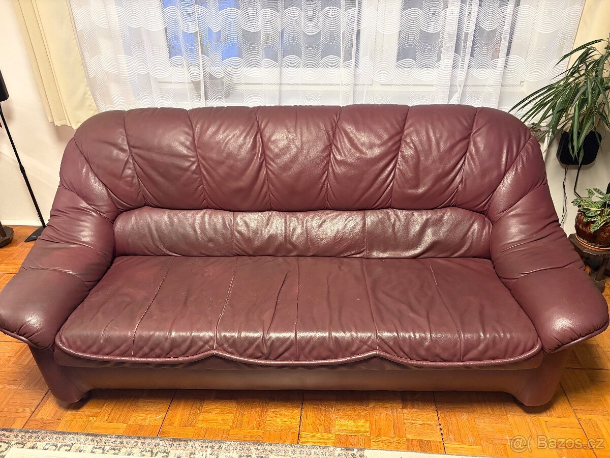 Nabízím koženou sedací soupravu - gauč (190cm x 85cm) + dvě křesla (95cm x 85cm). Bez většího poškození, nějaká místa jsou odřená viz foto. Odvoz vlastní.