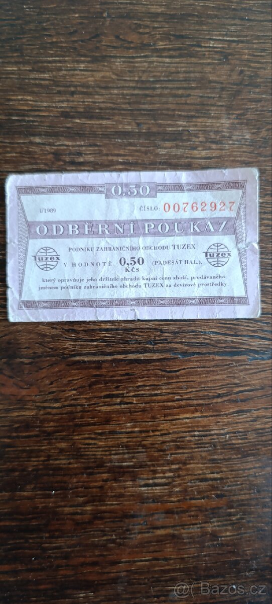 Nabízím bon padesát haléřů,