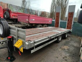 Nový přívěs pro převoz stavební techniky CAT JCB Bobcat Takeuschi Terex nebo zemědělské techniky Zetor Case John Deere atd, lesní techniky,pro převoz sloupů na Elektro montáže, celková hmotnost 21000 kg užitečné zatížení až 16000 kg. Celožárově zinkován přední náprava zvedací.