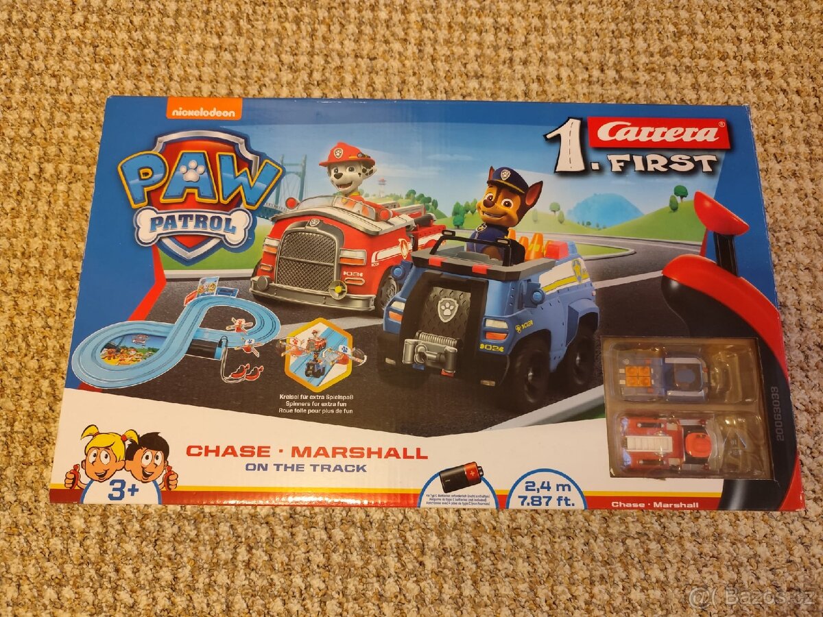 Prodám autodráhu Carrera Tlapková patrola, 2,4 m, málo používaná, kompletní a plně funkční
