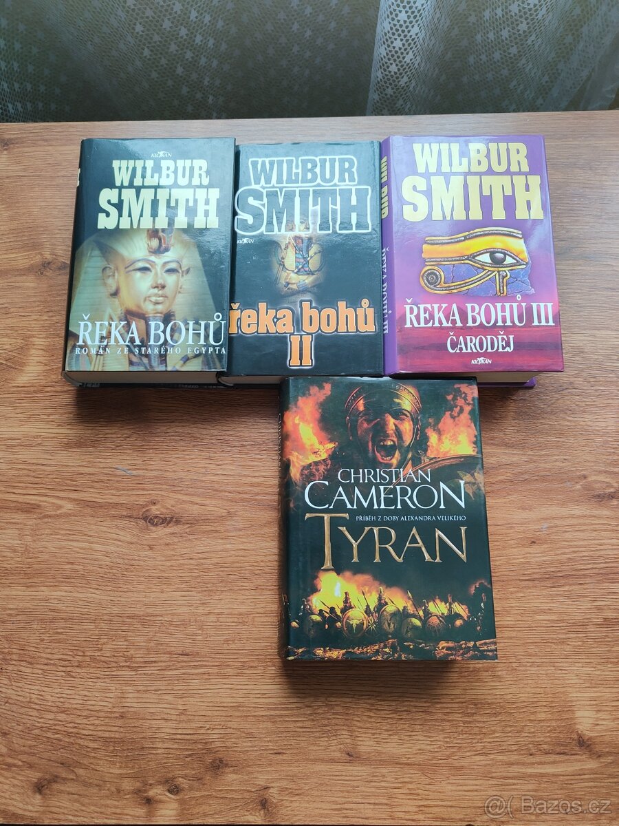 Prodám 4 knihy - historické romány. Perfektní stav, 1 přečtené, od té doby v knihovně: 1) Řeka bohů I. - Wilbur Smith 2) Řeka bohů II. - Wilbur Smith 3) Řeka bohů III. / Čaroděj - Wilbur Smith 4) Tyran - Cristian Cameron