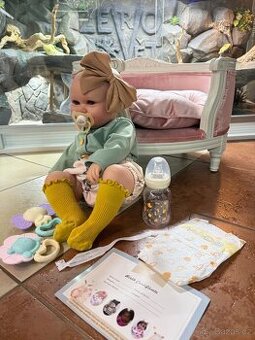 Reborn panenka s příslušenstvím. Včetně plínky, lahvičky, hraček, magnetického dudlíku, pásky na ruku a rodným listem. Jako živé miminko.