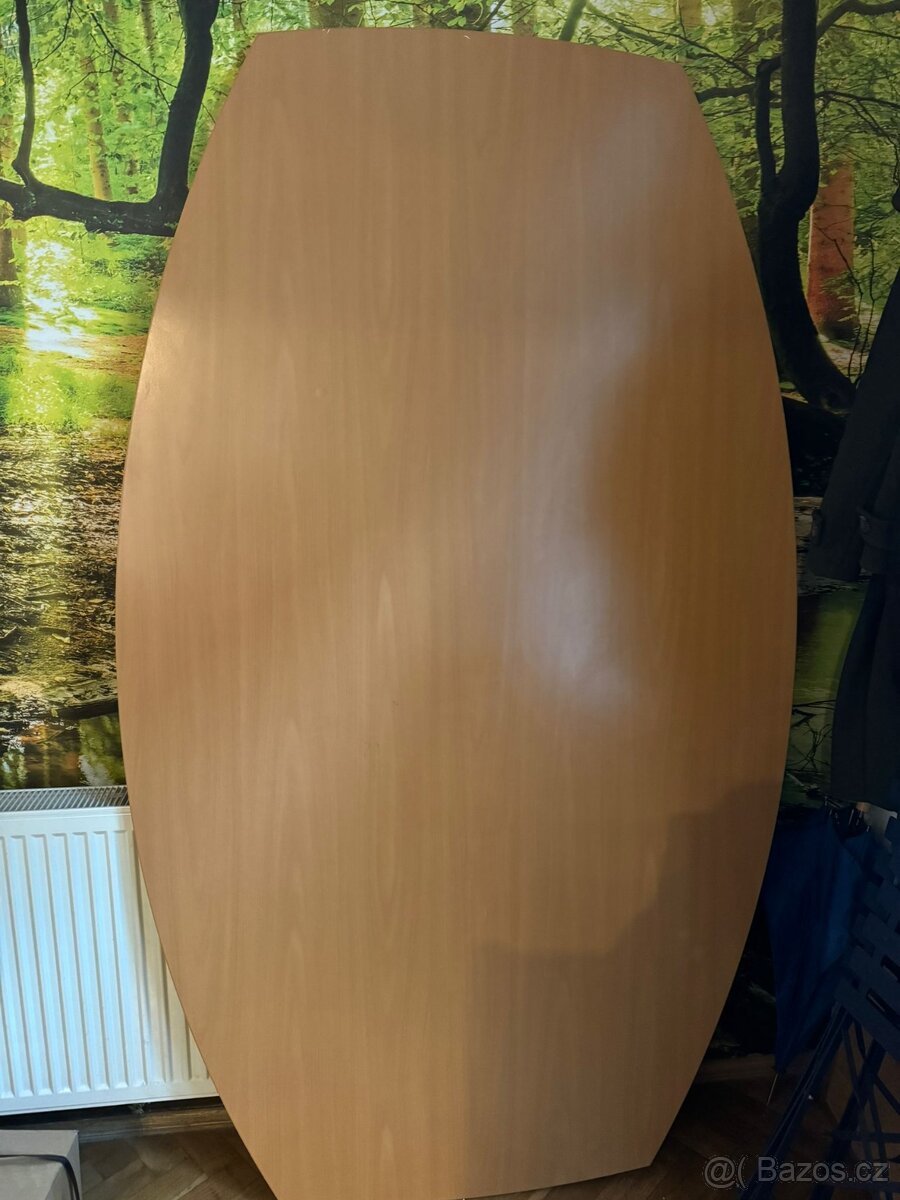 Cena: Dohodou. Stolová deska, délka 205 cm, šířka v nejužším místě 70 cm, šířka v nejširším místě 120 cm, odvoz co nejdříve na Praze 2