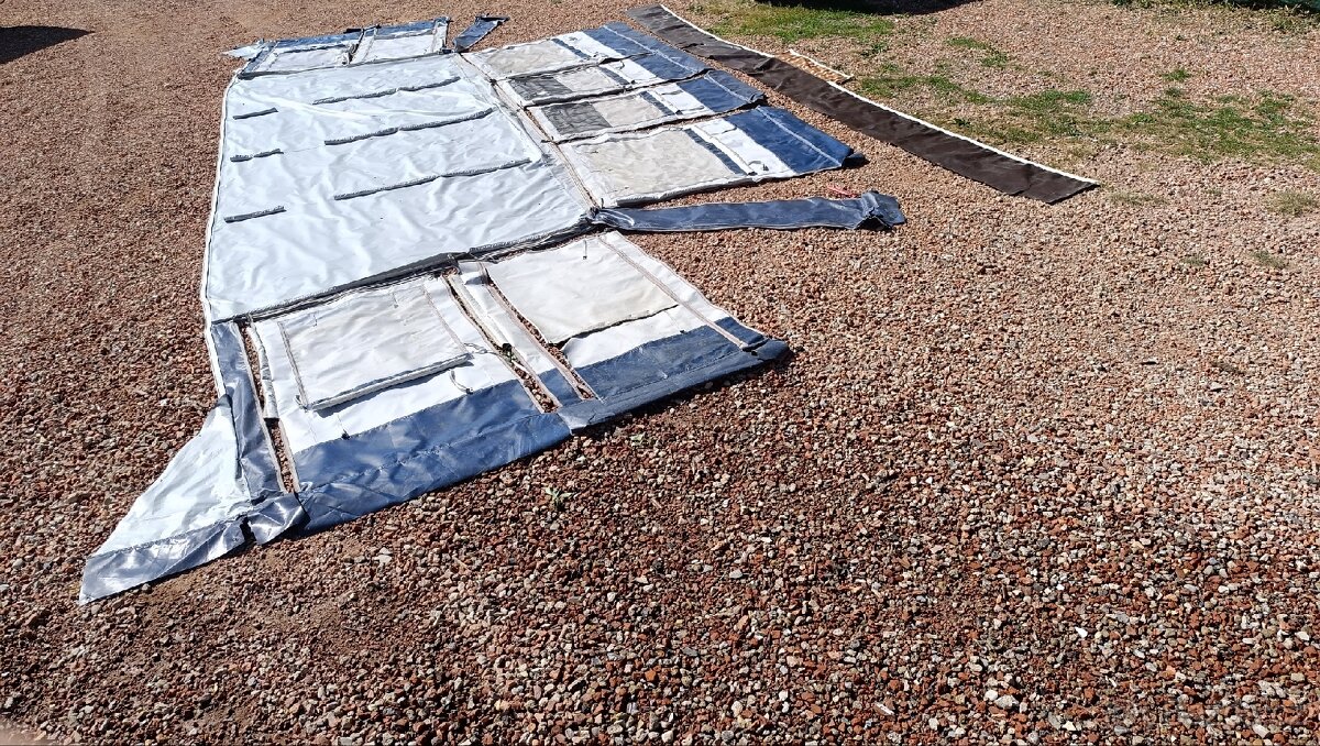 Prodám předstan ke karavanu o rozměru 10.6m (zem/zem). Předstan je pěkný, bez dír, materiál hezký, živý. Tyče k předstanu jsou také.