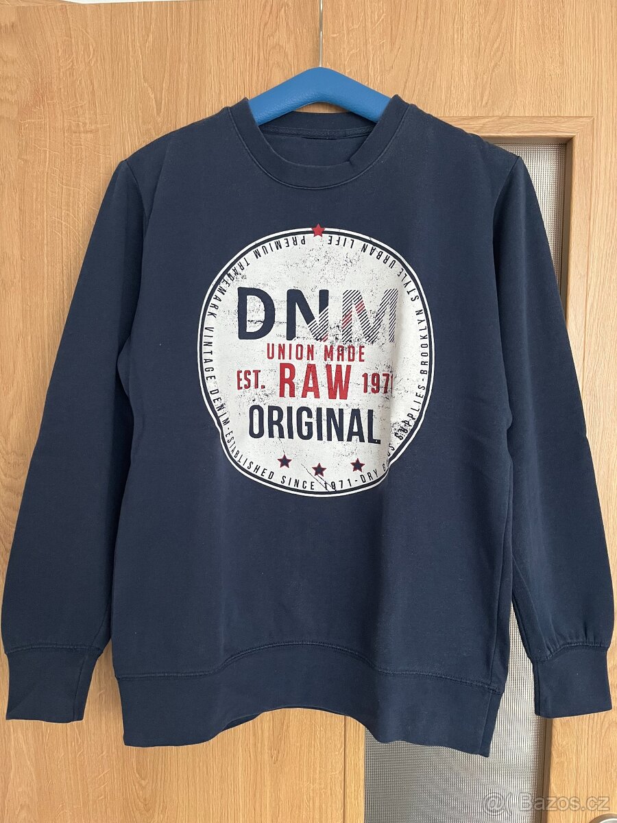 Zachovalá mikina Denim vel. S Náplety v dobrém stavu. Délka mikiny 64 cm, Šířka ramen 40 cm, Šířka pod paži 49 cm, Délka rukávu 56 cm.