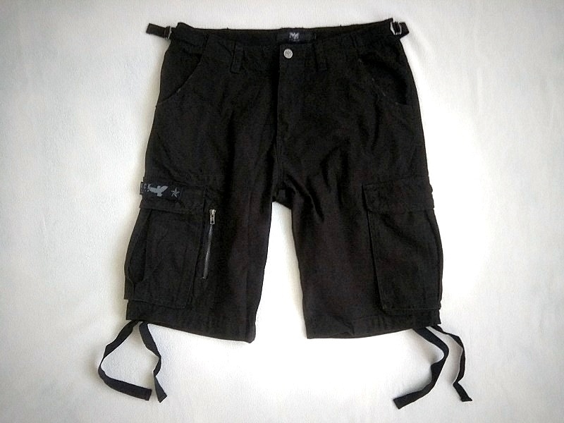 Prodám černé bavlněné kraťasy, velikost 32. Kraťasy mají zapínání na zip, praktické kapsy na nohavicích a stahovací šňůrky na nohavicích.