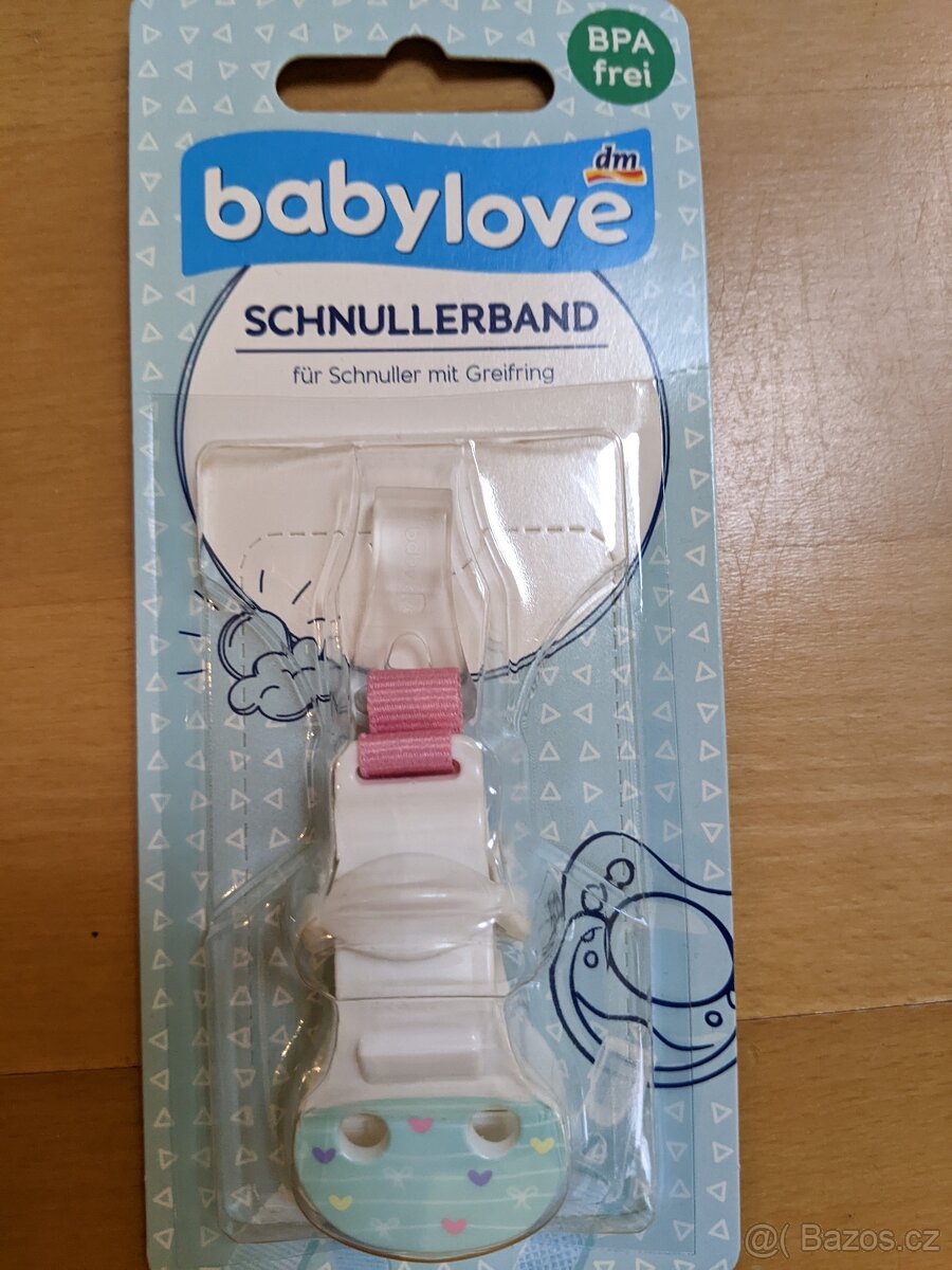 Babylove klip na dudlík. Slouží k připevnění na oblečení a chrání dudlík před upadnutím.