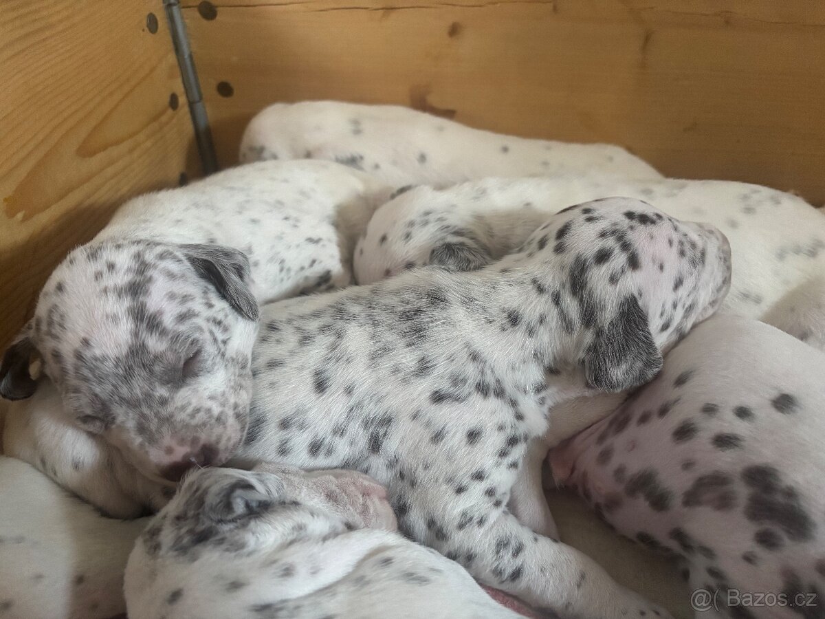 Cena: Dohodou. Nabízím k rezervaci štěňátka dalmatina, narozená 7.2.2026. Štěňátka jsou hnědě puntikate, po hnědých rodičích. K odběru začátkem dubna. K dispozici 1 holka a 4 kluci. Do nových domovů půjdou očkovaní, čipovaní a odčervení.