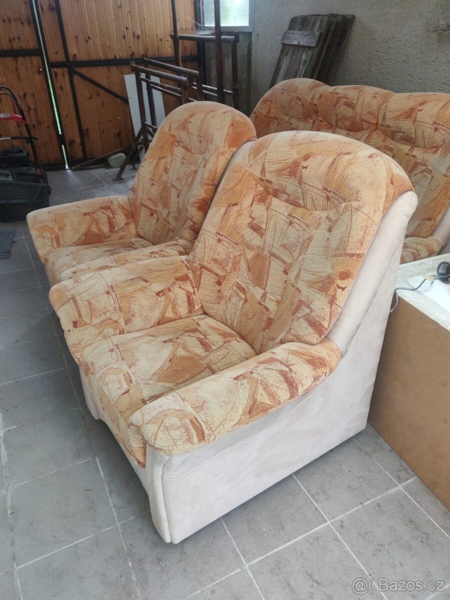 Prodám pěkný komplet gauče a 2 křesel. Výborný stav, neprosezené.