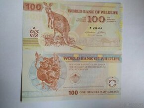 Sběratelská bankovka 2020 - World Bank of Wildlife - klokan - one hundred sovereign - série B 000464. Stav perfektní. Platba předem + poštovné.