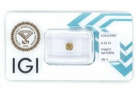 Diamant 100% Přírodní diamant bez umělých úprav Diamant: 0,52ct, čistota: VS1, barva: Natural Fancy Intense Brownish Yellow Diamant byl certifikován gemologickou laboratoří IGI, která je druhá nejlepší na světě! Čistota Čistota diamantu se určuje pomocí lupy (při 10x zvětšení) a obsahu inkluzí. Hodnocení čistoty diamantů: F/IF (Flawless) Neobsahuje žádné vnější ani vnitřní nečistoty. Extrémně vzácný diamant. Nakupován nejčastěji jako investice. VVS 1, VVS 2(Very Very Small) Obtížně zjistitelné inkluze. Vzácný a cenný diamant. Používaný ve šperkařství i jako investice. VS 1, VS 2(Very Small) Velmi malé inkluze. Standartní diamant vyšší kvality. Užíván zejména na výrobu šperků. SI 1, SI 2(Small Inclusions) Malé, snadno zjistitelné inkluze. Standartní diamant. Používán především ve šperkařství. P1/I1, P2/I2, P3/I3(Included 1-3) Velké a četné inkluze lehce viditelné pouhým okem. Používaný pro výrobu méně luxusních šperků