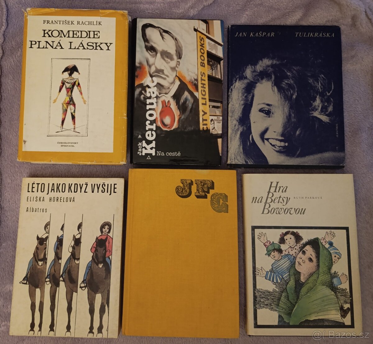 Prodám tyto knihy: 1. František Rachlík - Komedie plná lásky, cena 70 Kč 2. Jack Kerouac - Na cestě, cena 250 Kč 3. Jan Kašpar - Tulikráska, cena 90 Kč 4. Eliška Horelová - Léto jako když vyšije, cena 130 Kč 5. James Fenimore Cooper - Poslední Mohykán, cena 90 Kč 6. Ruth Parková - Hra na Betsy Bowovou, cena 250 Kč Osobní předání v Kladně. Inzerát je platný do smazání.