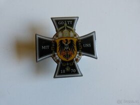 Pěkný kovový německý čepicový odznak "Gott mit uns" 1870. Používaný za 1.světové války. Upevnění na dva piny. Repro.