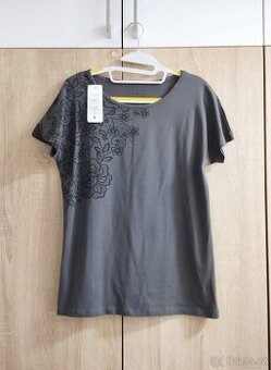 Nabízím zcela nové s visačkou bavlněné triko s krátkým rukávem od značky Lelosi. S pěknými potištěnými detaily. Pružný materiál, měřeno v klidu. Již neprodejný kousek, jednalo se o limitku. Velikost M. Délka: 66 cm Šířka: 40 cm Materiál: 91% bavlna, 9% elastan. V případě zájmu odpovídejte na inzerát či uvedený e-mail.
