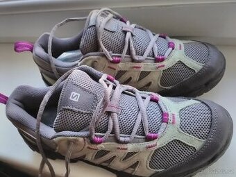 Pohorky Salomon XTEMPO W, dámské Výrobce: Salomon Velikost: 6 ½ / 40 Stélka: 27 cm Podešev: ContaGrip, záběr a odolnost v těžkých terénech, nezanechává šmouhy Váha boty: 390 g Původní cena: 99,90 Eu.( 2 600 Kč.) Prodejní cena: 900 Kč nošené velmi málo