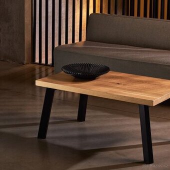 Prodám konferenční stolek s masivní dubovou deskou a bytelnou kovovou podnoží. Rozměry 100x60x45cm Deska natřená dvěma vrstvami Osmo