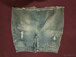Prodam damske obleceni: Minisukne dzinova - vel. 34, temer nenosena, cena 80,– Teplakova minisukne - vel. S, cena 30,– Cerna minisukne - vel. 36, cena 40,– Hnedy svetr - vel. 38, cena 80,– Cerny svetr se stribrnym vysivanim - vel. 36, cena 50,– Spolecenske cerne saty se stribrnymi napisy - vel. 40, cena 90,– Sede a cerne pletene saty - vel. 36/38, temer nenosene, cena 130,–/ks Sede pletene bolerko - vel. M, temer nenosene, cena 50,-. Mozno odkoupit vse za zvyhodnenou cenu 600,-.