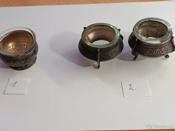 1. Nabízím k prodeji nejspíš slánku od Firmy Franz Bibus &Sohn. Zakladatelem firmy byl Franz Josef Bibus (1860-1941)v roce 1887 se mu narodil syn Carl Alois Franz Bibus, který se později stal spolumajitelem firmy.V roce 1917 se změnil název firmy na Franz Bibus & Sohn. Podnik pro výrobu stříbrných, alpakových a galvanicky pokovených předmětů fungoval do 40. let, kdy byl František Bibus donucen svou firmu prodat. Po druhé světové válce národní správa sloučila veškeré místní dílny a vzniklý celek byl začleněn do n.p. Sandrik. výška 35 mm, šířka 45mm průměr skleněné misky 48 mm. Cenu prosím nabídněte. 2.Nabízím dvě staré mističky na kaviár z alpaky z 2.pol. 20 stol., Rusko značení viz foto, se skleněnou vložkou. výška 35 mm, šířka 55mm průměr skleněné misky 42 mm. Cena za obě 400 kč. Při e-mailové komunikaci pište vaše tel. číslo pro rychlejší komunikaci zavolám. Osobní předání K. Hora nebo Zásilkovna. Podívejte se na mé další mé inzeráty.