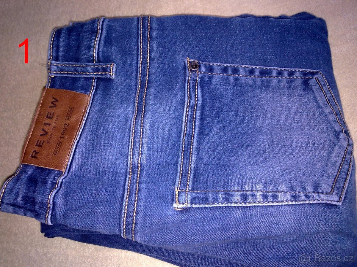 1. Review - pas 35, celk. délka 103, vnitřní délka nohavice 78 cm. 2. Zara - pas 33, celk. délka 90, vnitřní délka nohavice 66 cm. 3. Only - pas 32, celk. délka 97, vnitřní délka nohavice 70 cm. Elastický materiál Cena 100 za kus nebo 200 za vše.