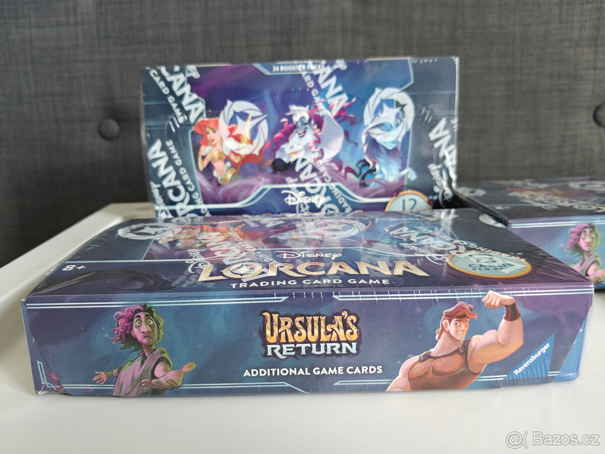 Prodám Booster Box sběratelské karetní hry Disney Lorcana z edice Ursula's Return. Booster box obsahuje 24 boosterů, každý booster pak obsahuje 12 herních karet. Nové, zabalené, nepoužívané. Cena: 2500 kč za 1 Booster Box (Momentálně mám 3 ks) Poštovné: Balíček budu posílat přes Zásilkovnu, která si momentálně účtuje 89 kč za odeslání, případně dalších 26 kč za odeslání na dobírku. Nebo je možné osobní předání v Plzni.
