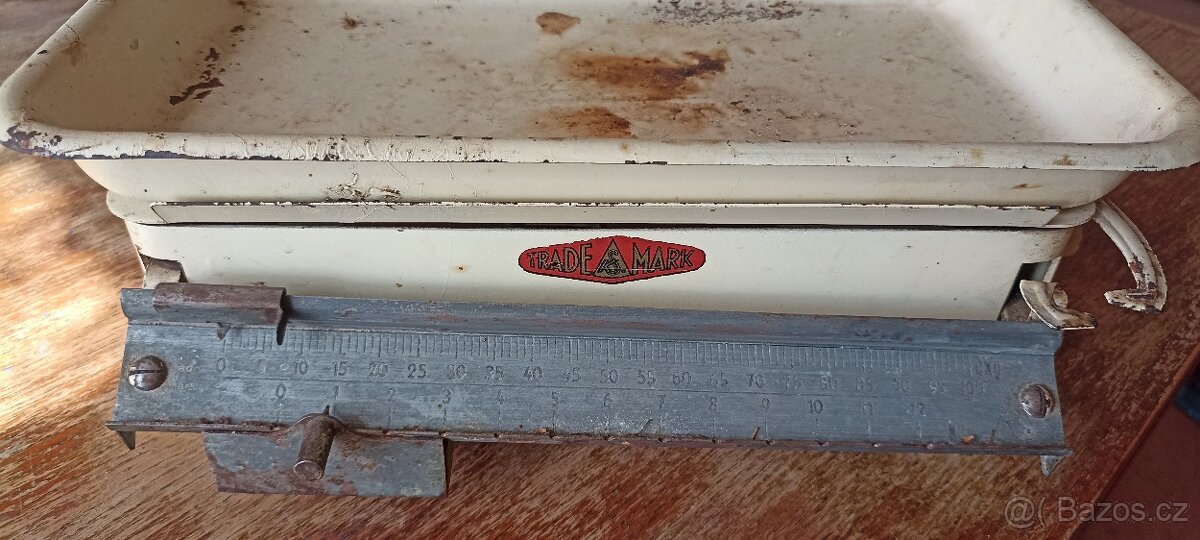 Prodám starou funkční váhu po babčice zn. TRADE MARK (nečištěná).