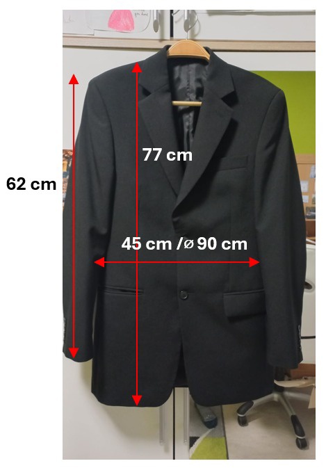 Oblek, který doma zbyl po synových tanečních.