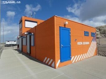 Velmi kvalitní patrový modulový dům117m2, používaný 9 let jako zázemí pro plavčiky. Je plně vybaven: kancelář, sprchy, šatny, toaleta, sklady, ošetřovna, kuchyň + bar. Má elektrické žaluzie a betonovou podlahu. Prohlídka je možná v Přešticích