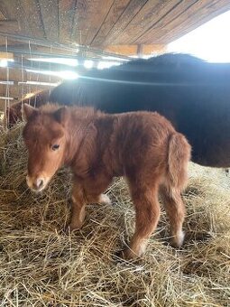 Prodám hřebečka mini shetland, narozen 02/2025. Vymazlený ryzák s průkazem původu, vhodný do chovu. Zvyklý na veterináře, podkováře a na ohlávku.