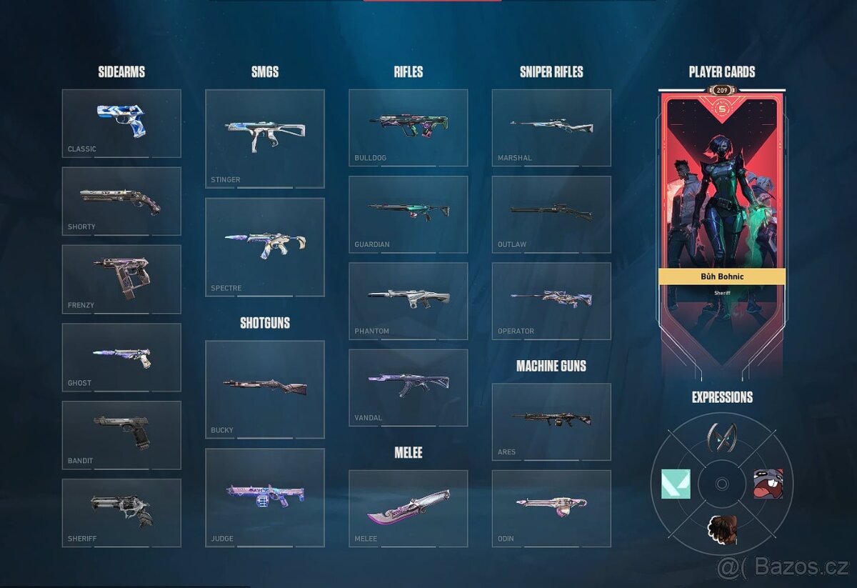 Cena: Nabídněte. (nevlezly se mi tam 3 skiny dva na ghost a jeden na classic radiant entertainment system ghost,evori ghost a VCT x TE classic ale zbytek skinu je na obrazkach). Prodám svůj osobní Valorant účet cena je dohodou. Účet je aktuálně v ranku bronze 2. Obsahuje velmi žádaný 5years bundle a další prémiové skiny. ⚠️ Důležité informace: Pouze prodej! Nemám zájem o výměnu (trade) za Fortnite nebo jiné účty. Kontakt: Pro nejrychlejší domluvu pište na Discord:phenix_exe facebook phosk exe instagram _pán_nikdo_