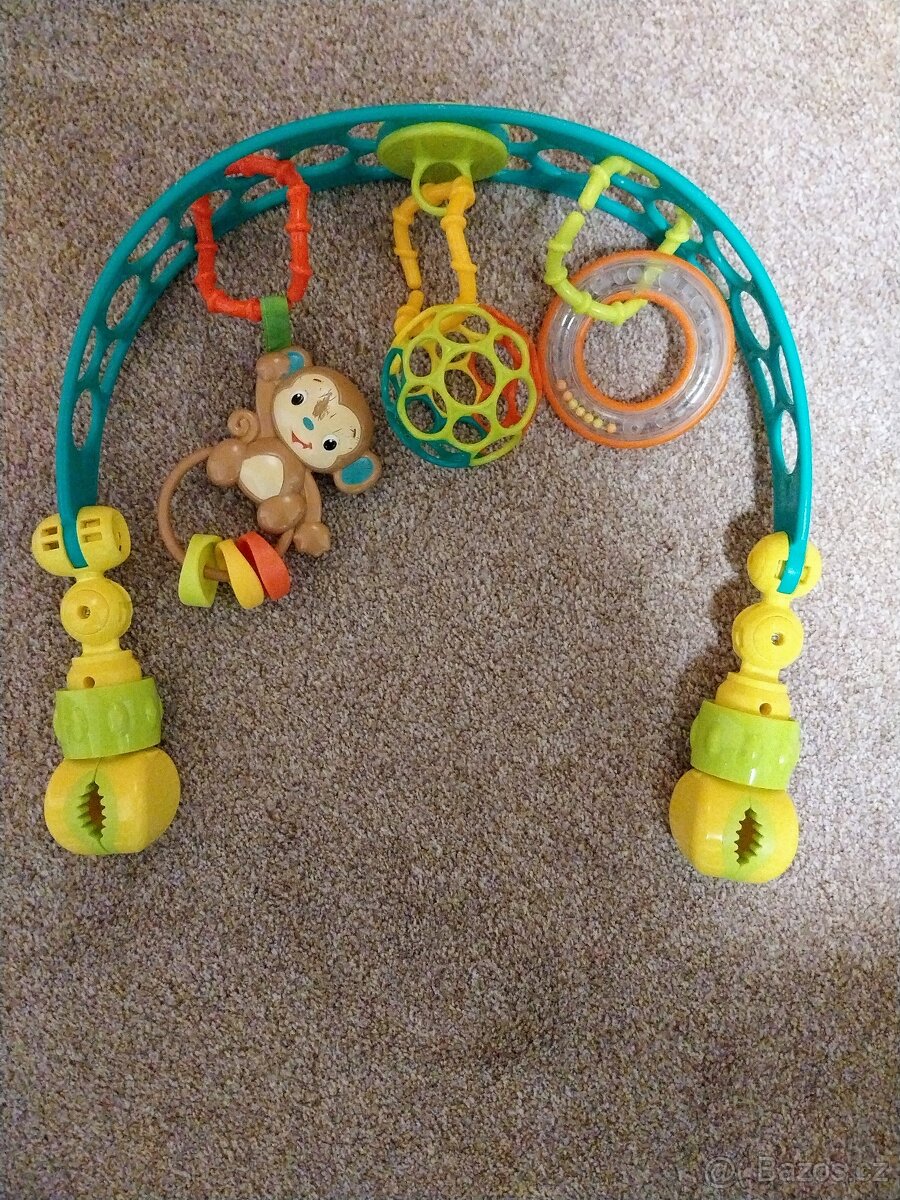 - možnost připevnit na houpátko, vajíčko, postýlku, kočárek... - packy polohovatelné do všech směrů - zavěšené hračky lze prodloužit nebo vyměnit za jiné - neobsahuje BPA, PVC, latex, ftaláty - rozměry 46 x 36 x 7 cm - jediná vada: poškrábání na opičce