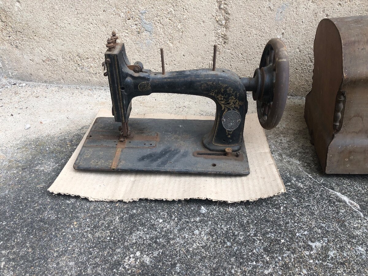 Nabízím starý šicí stroj včetně krytu, nález z půdy. Osobní převzetí v Praze.